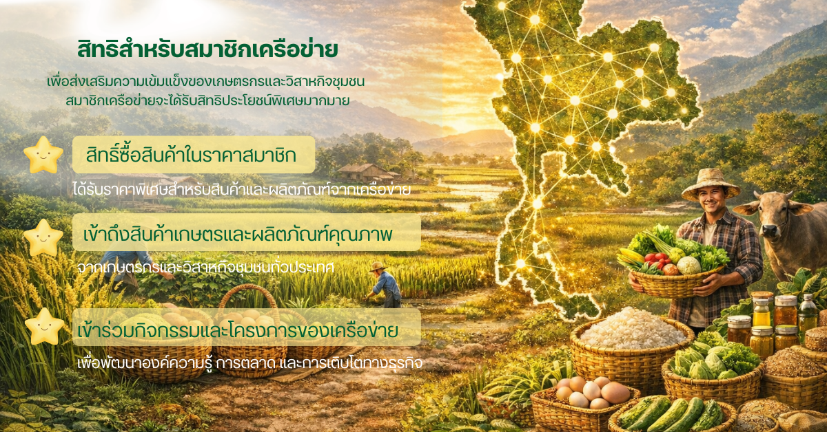 “เครือข่ายวิสาหกิจชุมชนทหารผ่านศึกและเกษตรกรไทย มุ่งสร้างโอกาส พัฒนาอาชีพ และเสริมสร้างความเข้มแข็งให้เศรษฐกิจชุมชน เพื่อให้สมาชิกสามารถพึ่งพาตนเองได้อย่างยั่งยืน”